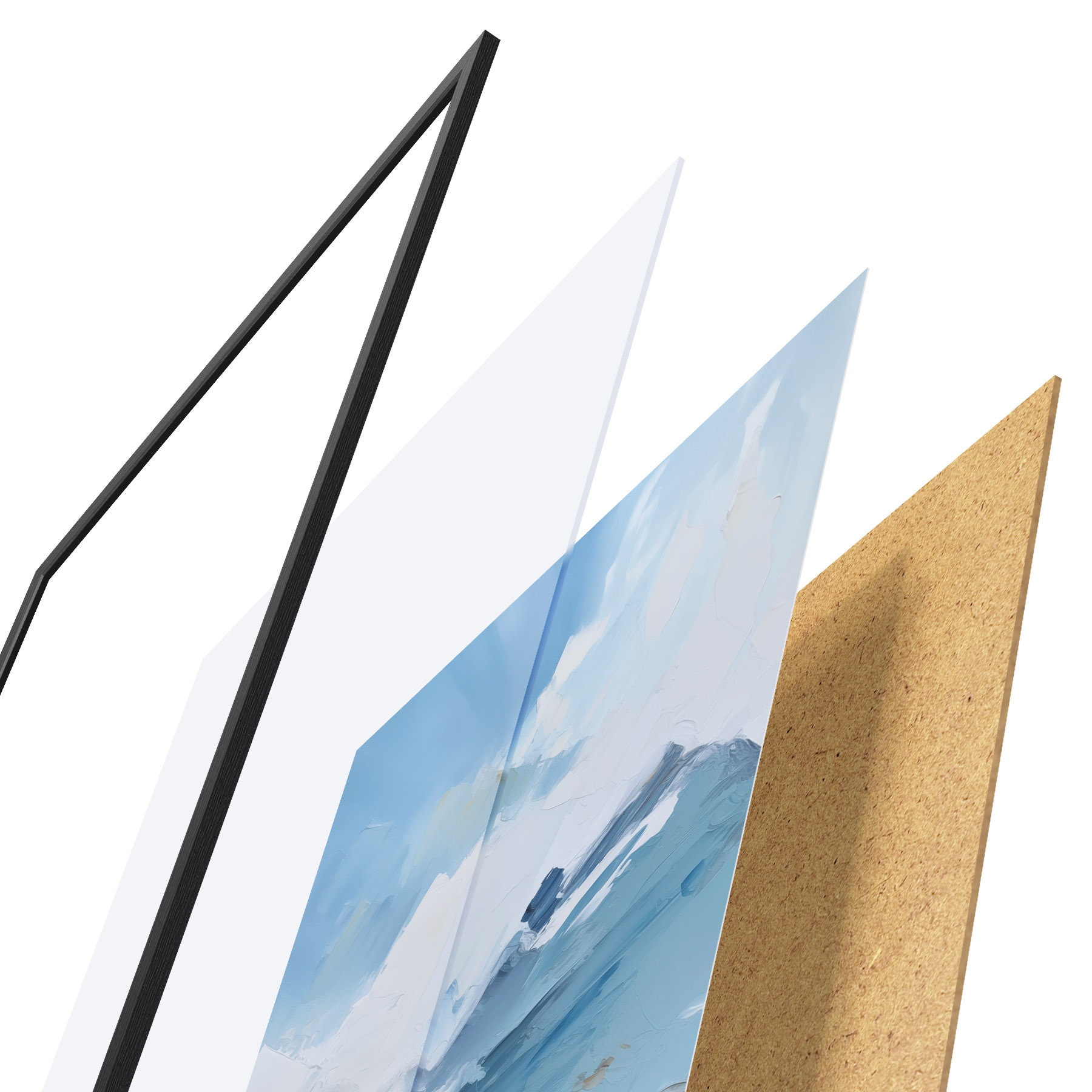 Plakatą sudaro rėmas, pleksiklas, atspausdintas vaizdas ir medžio drožlių plokštės pagrindas. Plakatą galima iš karto pakabinti ant sienos dėl kitoje pusėje esančių laikiklių.