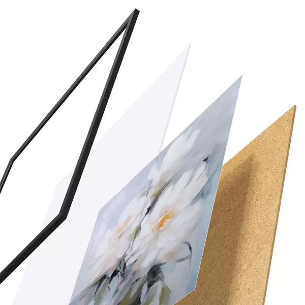 Plakatą sudaro rėmas, pleksiklas, atspausdintas vaizdas ir medžio drožlių plokštės pagrindas. Plakatą galima iš karto pakabinti ant sienos dėl kitoje pusėje esančių laikiklių.
