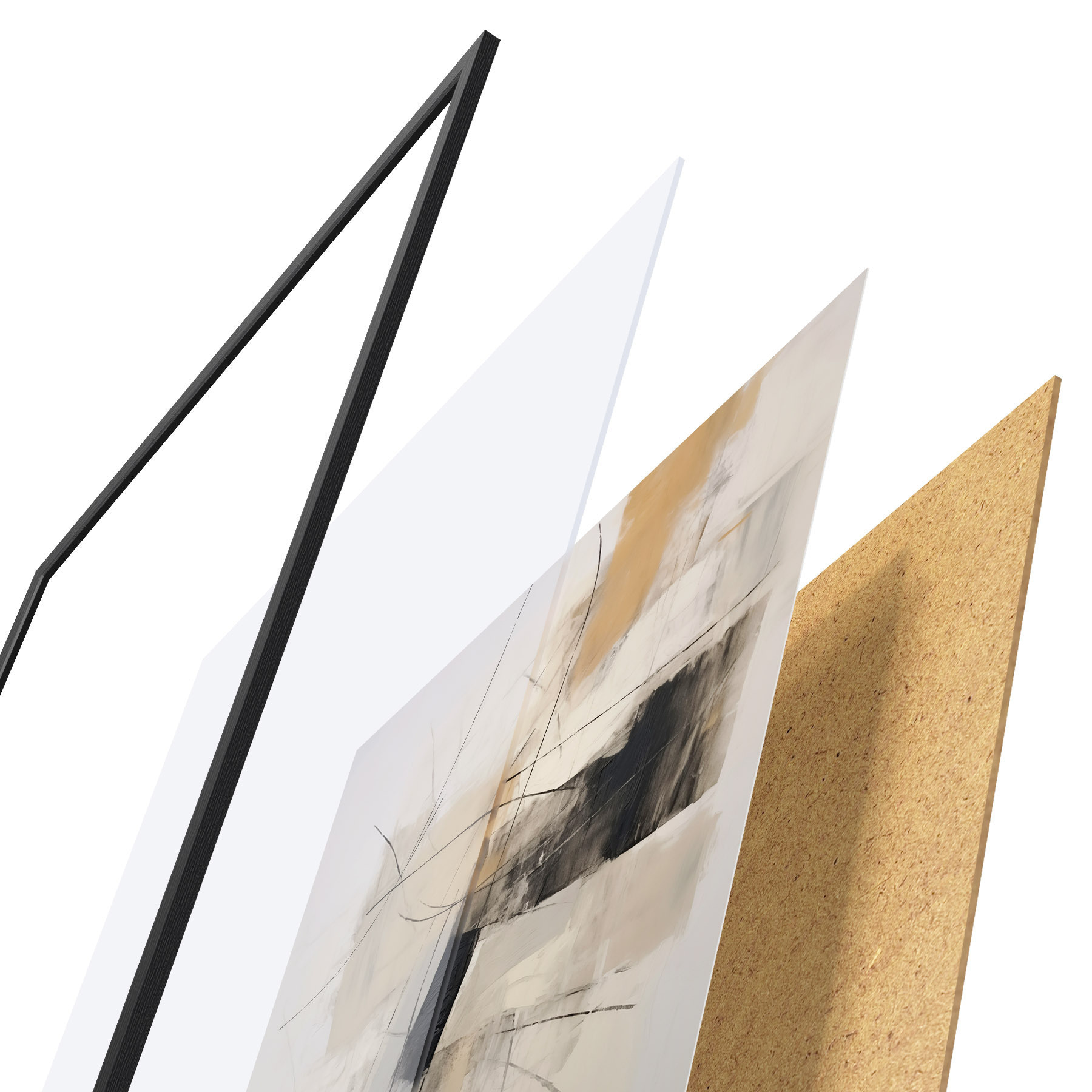 Plakatą sudaro rėmas, pleksiklas, atspausdintas vaizdas ir medžio drožlių plokštės pagrindas. Plakatą galima iš karto pakabinti ant sienos dėl kitoje pusėje esančių laikiklių.