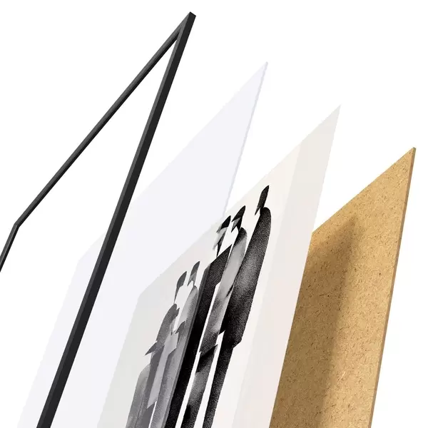 Plakatą sudaro rėmas, pleksiklas, atspausdintas vaizdas ir medžio drožlių plokštės pagrindas. Plakatą galima iš karto pakabinti ant sienos dėl kitoje pusėje esančių laikiklių.