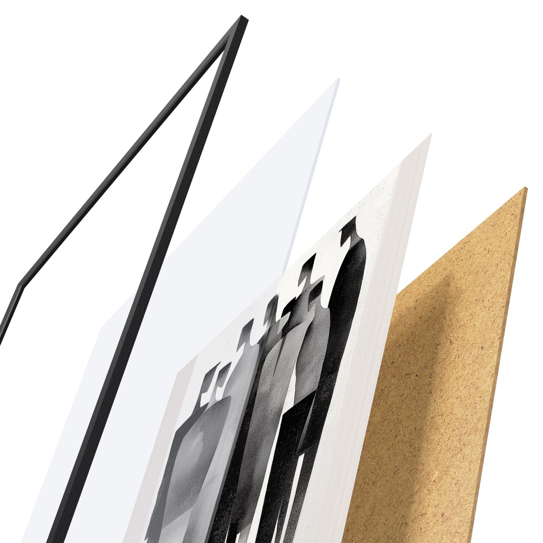 Plakatą sudaro rėmas, pleksiklas, atspausdintas vaizdas ir medžio drožlių plokštės pagrindas. Plakatą galima iš karto pakabinti ant sienos dėl kitoje pusėje esančių laikiklių.