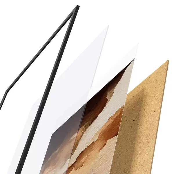 Plakatą sudaro rėmas, pleksiklas, atspausdintas vaizdas ir medžio drožlių plokštės pagrindas. Plakatą galima iš karto pakabinti ant sienos dėl kitoje pusėje esančių laikiklių.