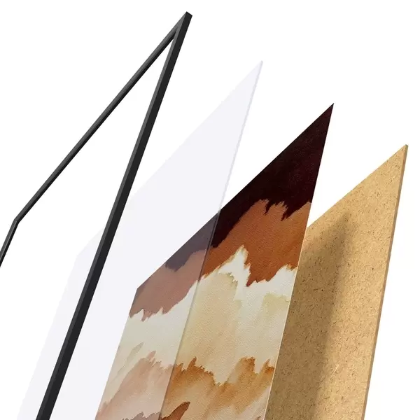 Plakatą sudaro rėmas, pleksiklas, atspausdintas vaizdas ir medžio drožlių plokštės pagrindas. Plakatą galima iš karto pakabinti ant sienos dėl kitoje pusėje esančių laikiklių.