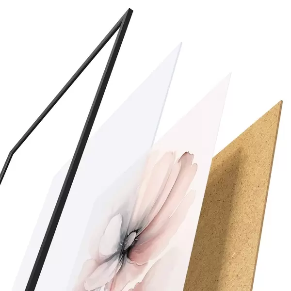 Plakatą sudaro rėmas, pleksiklas, atspausdintas vaizdas ir medžio drožlių plokštės pagrindas. Plakatą galima iš karto pakabinti ant sienos dėl kitoje pusėje esančių laikiklių.