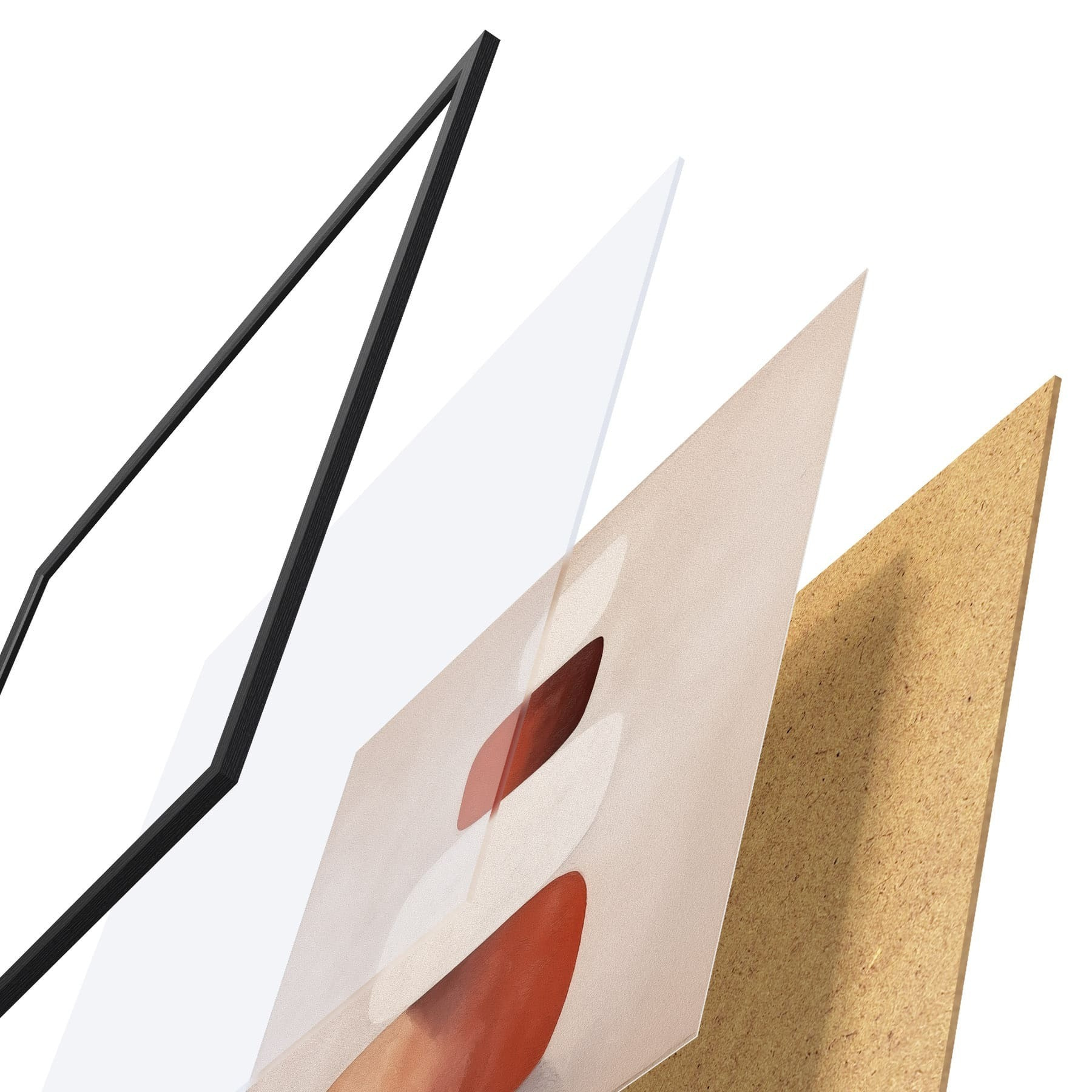 Plakatą sudaro rėmas, pleksiklas, atspausdintas vaizdas ir medžio drožlių plokštės pagrindas. Plakatą galima iš karto pakabinti ant sienos dėl kitoje pusėje esančių laikiklių.