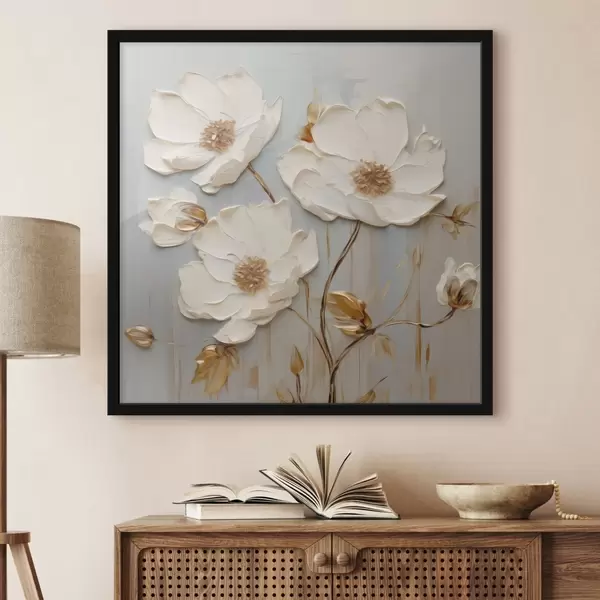 Plakatas Reljefiniai balti žiedai su šiltais lapais Ne f48093