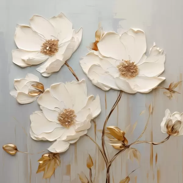 Plakatas Reljefiniai balti žiedai su šiltais lapais f48093