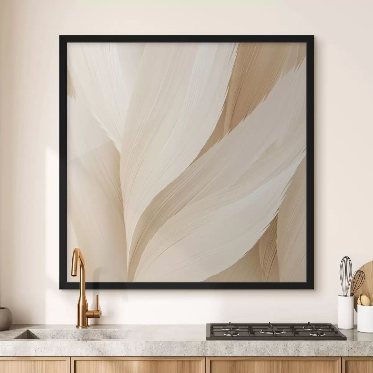 Plakatas Šviesios, plunksnų formos, smėlio spalvos f48096