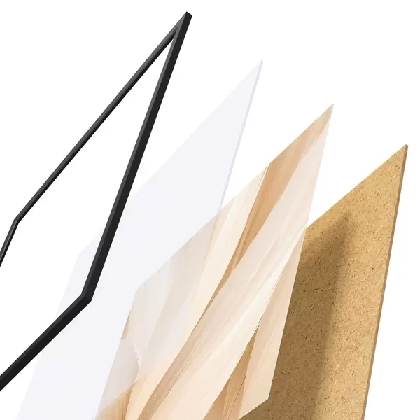 Plakatą sudaro rėmas, pleksiklas, atspausdintas vaizdas ir medžio drožlių plokštės pagrindas. Plakatą galima iš karto pakabinti ant sienos dėl kitoje pusėje esančių laikiklių.