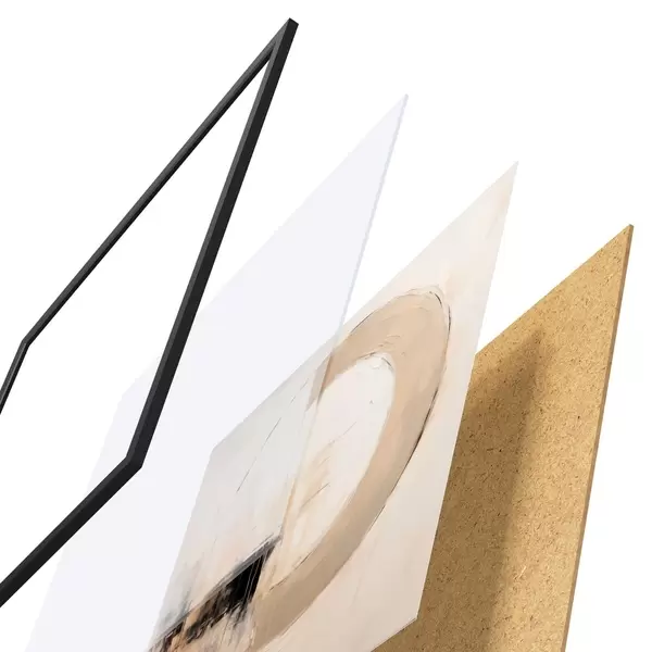 Plakatą sudaro rėmas, pleksiklas, atspausdintas vaizdas ir medžio drožlių plokštės pagrindas. Plakatą galima iš karto pakabinti ant sienos dėl kitoje pusėje esančių laikiklių.