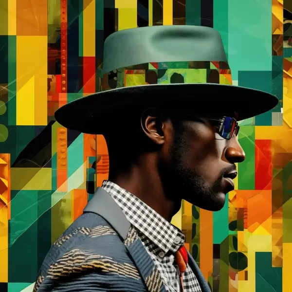 Plakatas Vyro su skrybėle portretas ryškioje fone f48100