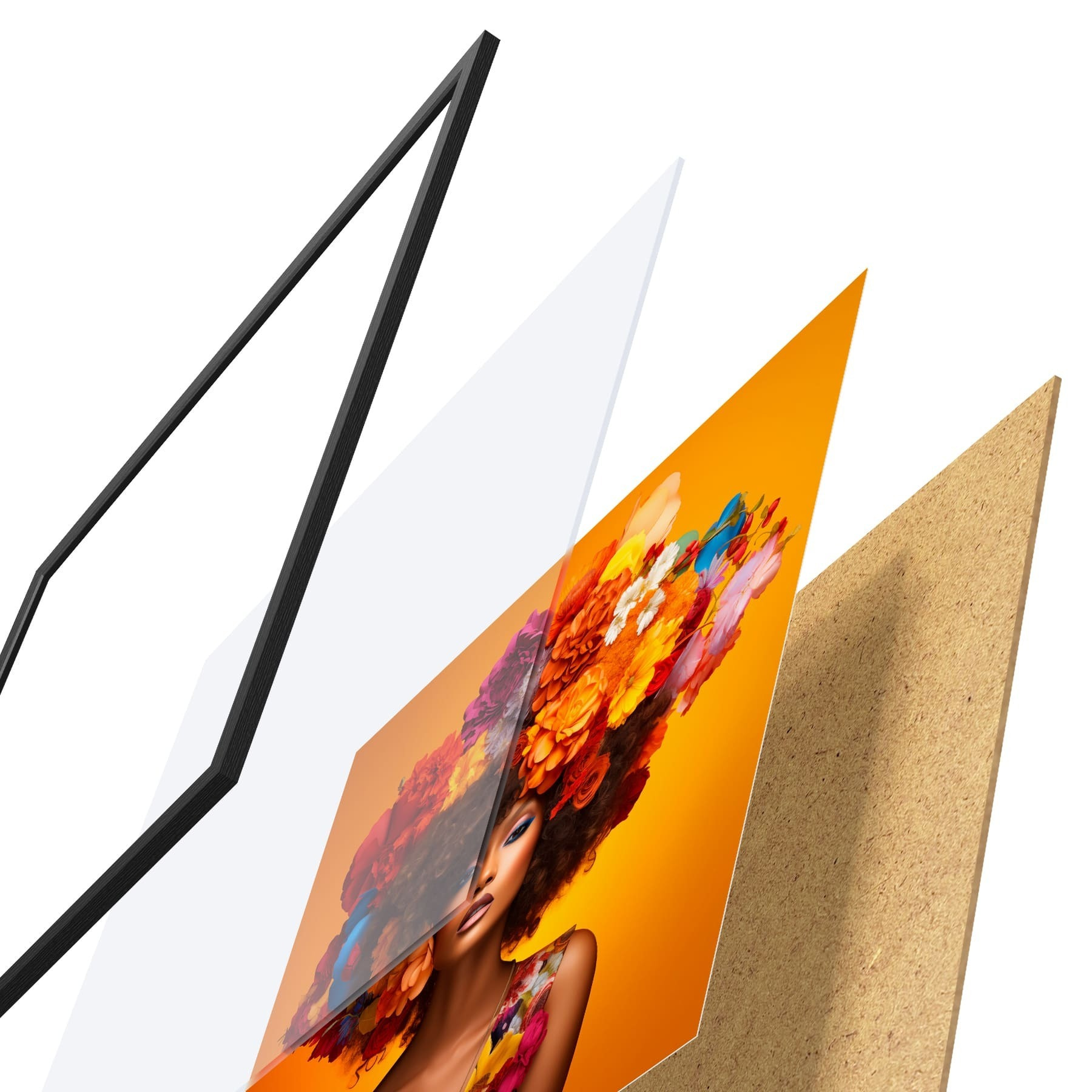 Plakatą sudaro rėmas, pleksiklas, atspausdintas vaizdas ir medžio drožlių plokštės pagrindas. Plakatą galima iš karto pakabinti ant sienos dėl kitoje pusėje esančių laikiklių.