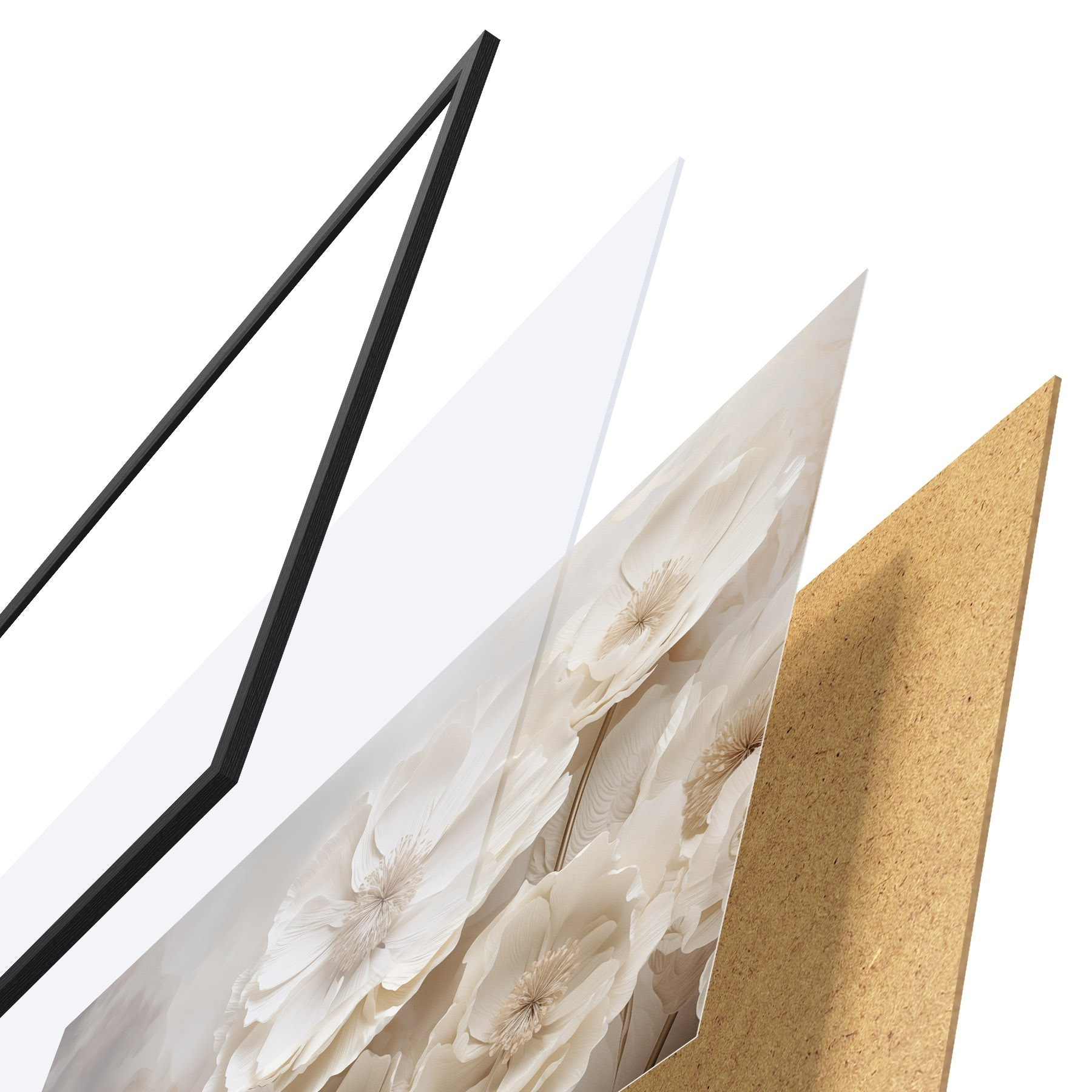Plakatą sudaro rėmas, pleksiklas, atspausdintas vaizdas ir medžio drožlių plokštės pagrindas. Plakatą galima iš karto pakabinti ant sienos dėl kitoje pusėje esančių laikiklių.