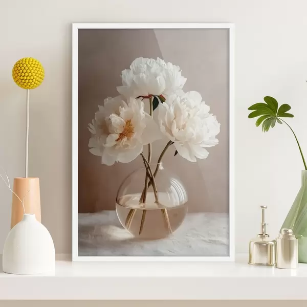 Plakatas vėjuotas minimalistinis natiurmortas su  pionijomis f48119