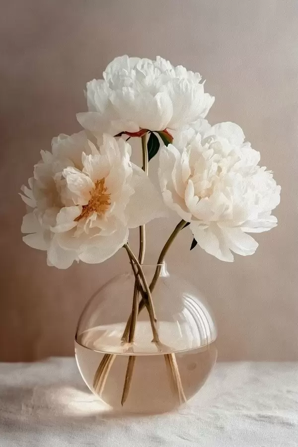 Plakatas vėjuotas minimalistinis natiurmortas su  pionijomis f48119