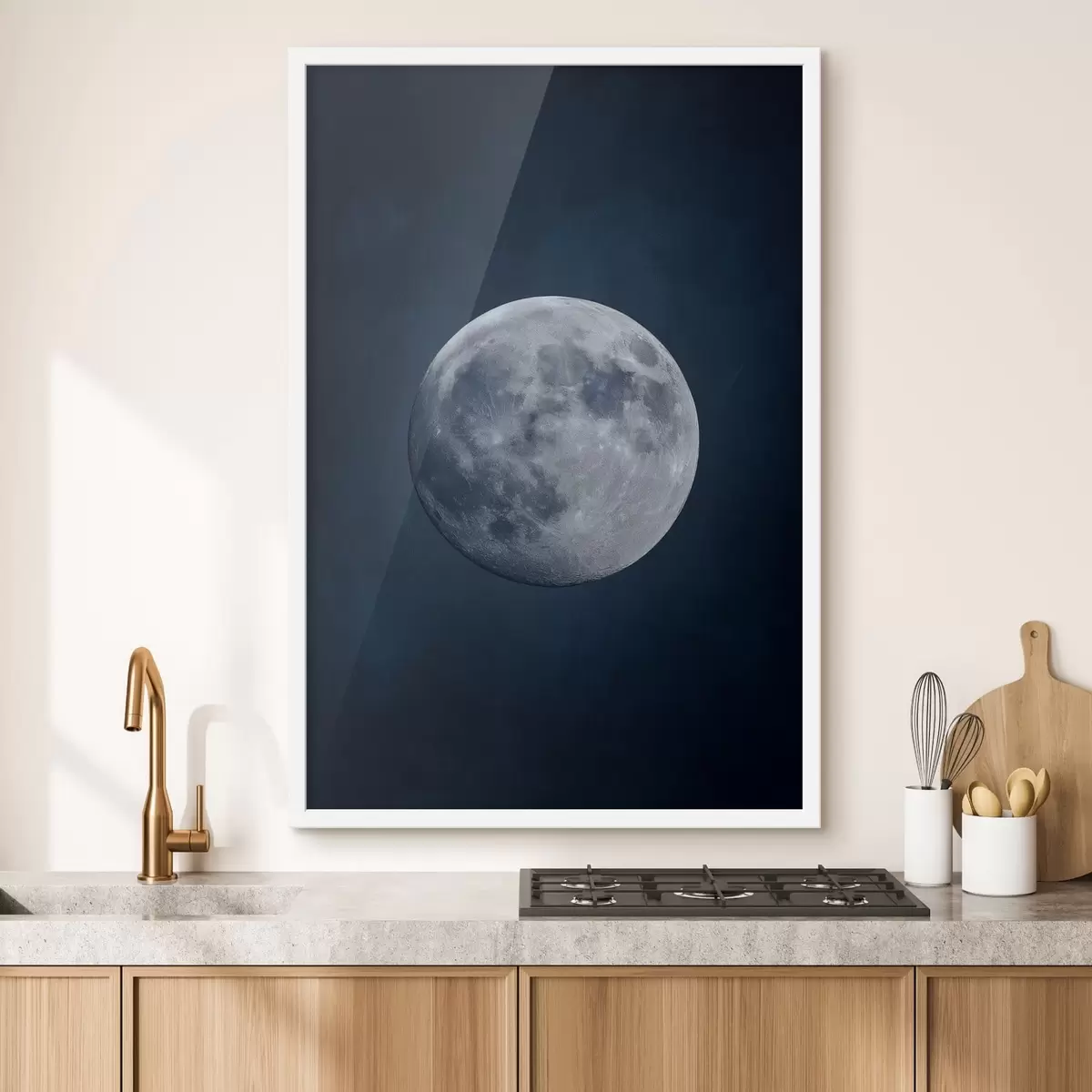 Plakatas pilnatis centre ant tamsiai mėlyno tekstūruoto fono f48122