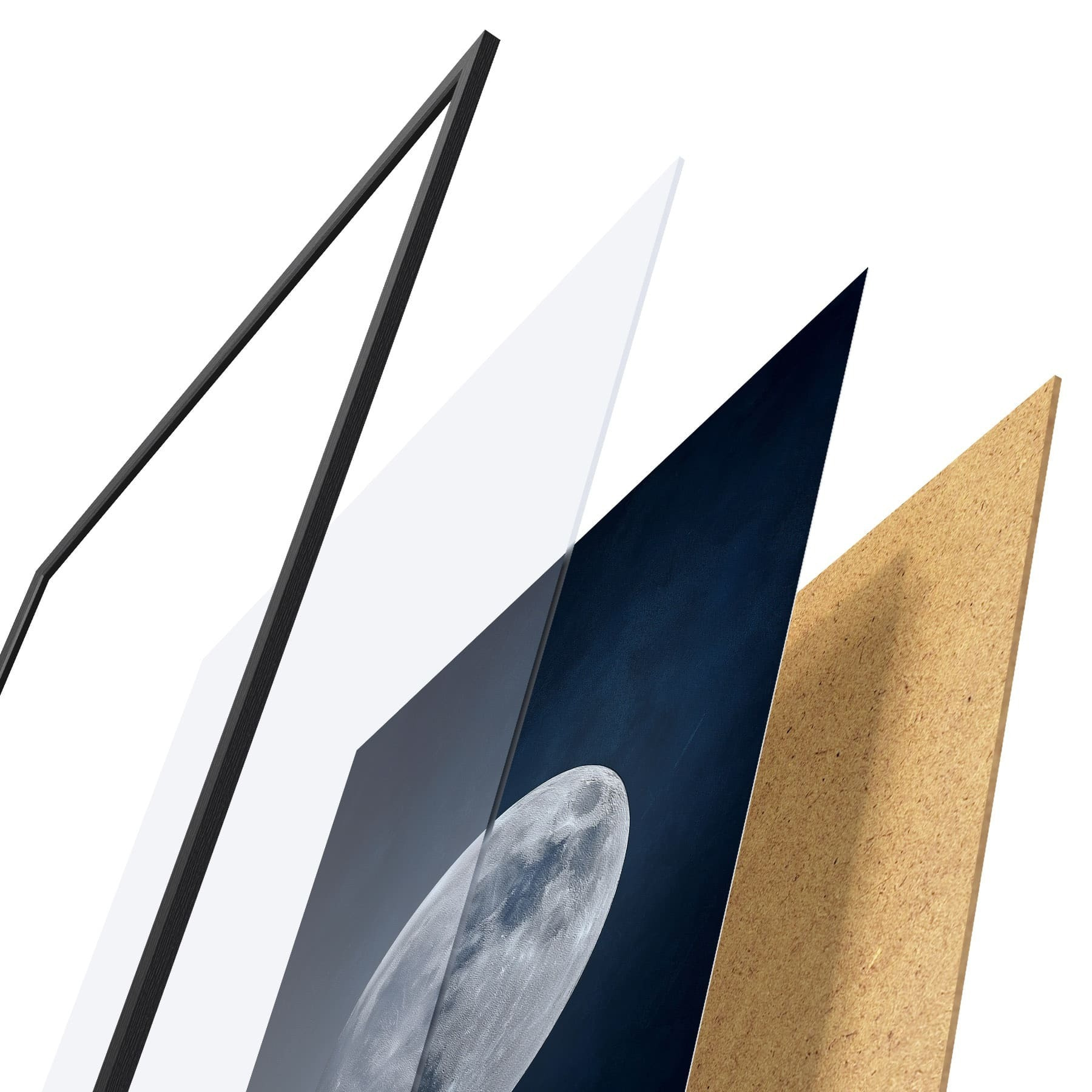 Plakatą sudaro rėmas, pleksiklas, atspausdintas vaizdas ir medžio drožlių plokštės pagrindas. Plakatą galima iš karto pakabinti ant sienos dėl kitoje pusėje esančių laikiklių.
