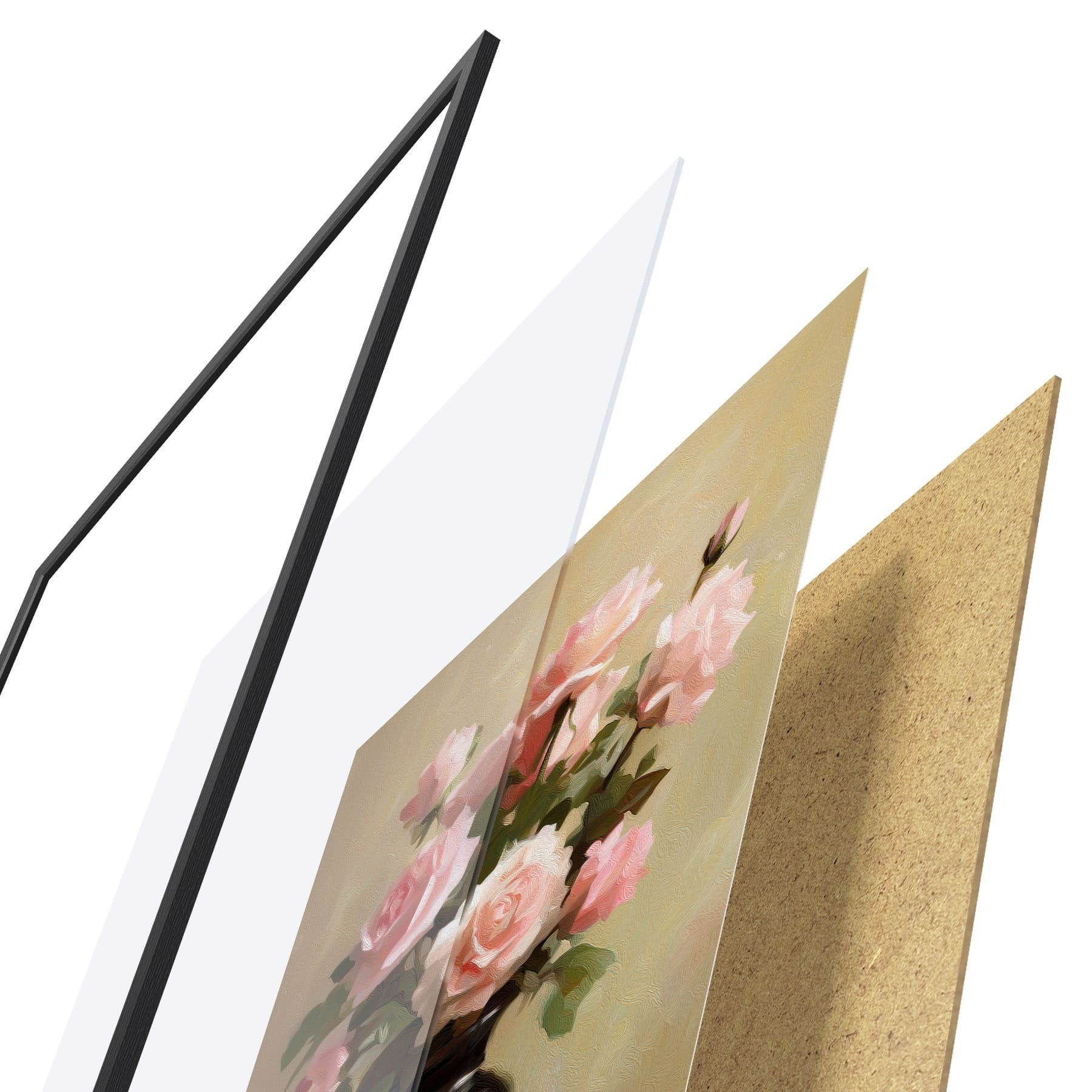 Plakatą sudaro rėmas, pleksiklas, atspausdintas vaizdas ir medžio drožlių plokštės pagrindas. Plakatą galima iš karto pakabinti ant sienos dėl kitoje pusėje esančių laikiklių.