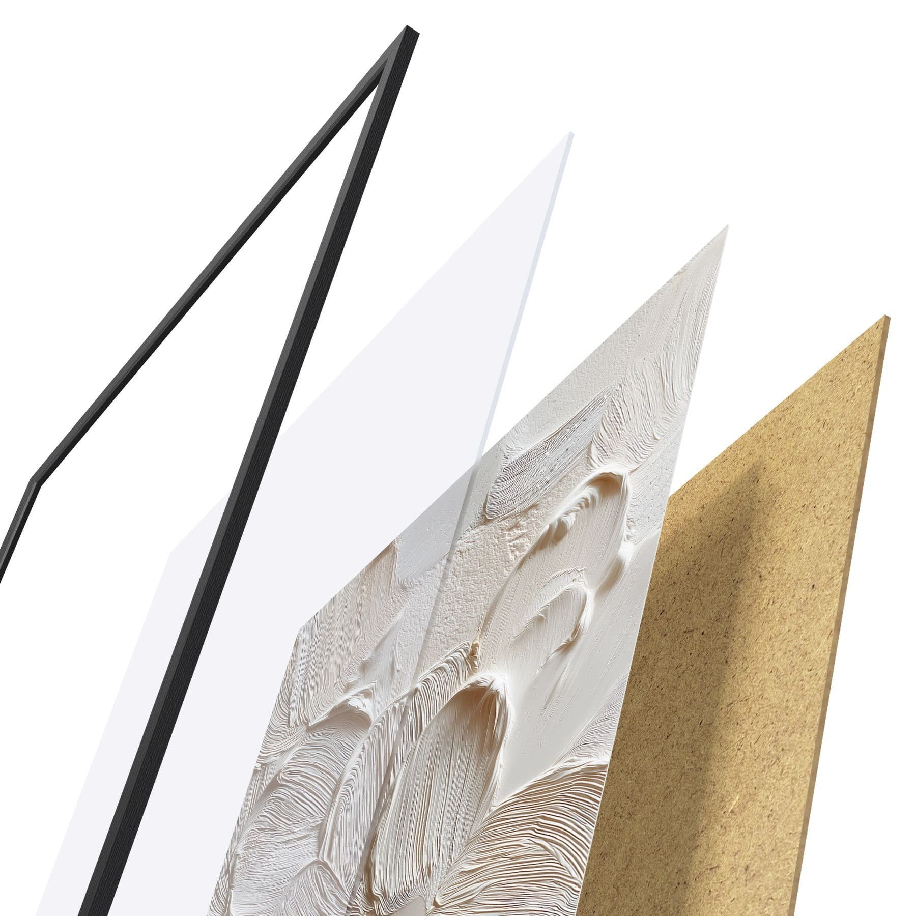 Plakatą sudaro rėmas, pleksiklas, atspausdintas vaizdas ir medžio drožlių plokštės pagrindas. Plakatą galima iš karto pakabinti ant sienos dėl kitoje pusėje esančių laikiklių.