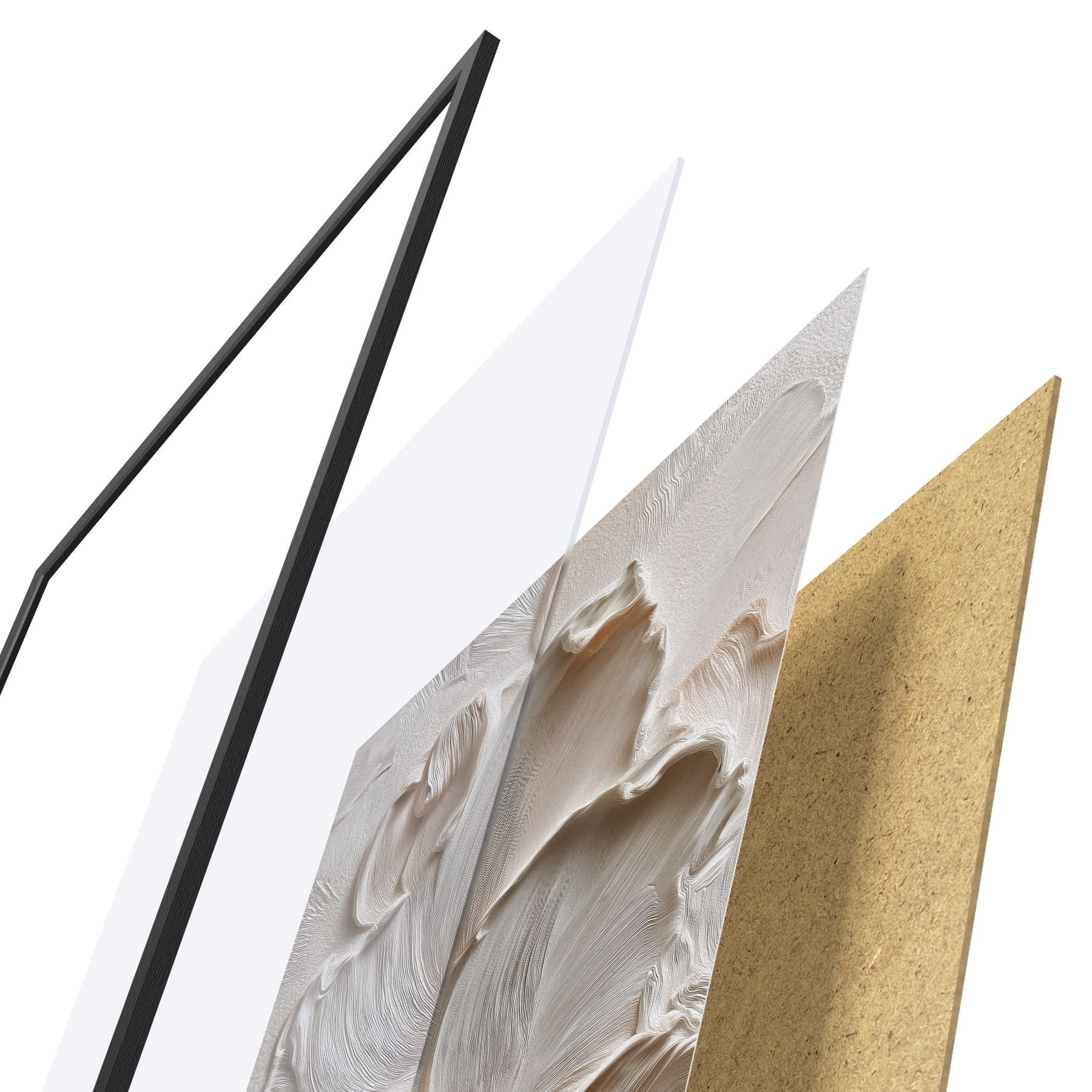 Plakatą sudaro rėmas, pleksiklas, atspausdintas vaizdas ir medžio drožlių plokštės pagrindas. Plakatą galima iš karto pakabinti ant sienos dėl kitoje pusėje esančių laikiklių.