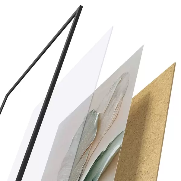 Plakatą sudaro rėmas, pleksiklas, atspausdintas vaizdas ir medžio drožlių plokštės pagrindas. Plakatą galima iš karto pakabinti ant sienos dėl kitoje pusėje esančių laikiklių.