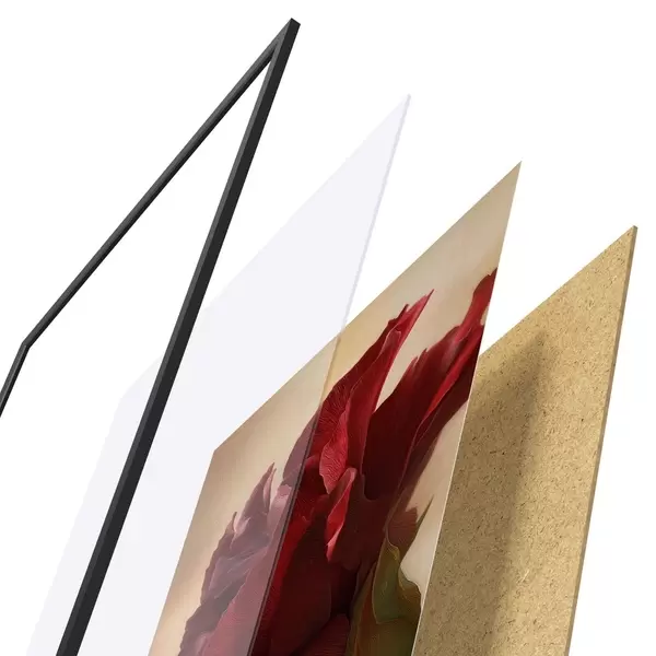 Plakatą sudaro rėmas, pleksiklas, atspausdintas vaizdas ir medžio drožlių plokštės pagrindas. Plakatą galima iš karto pakabinti ant sienos dėl kitoje pusėje esančių laikiklių.