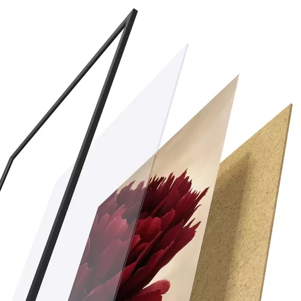 Plakatą sudaro rėmas, pleksiklas, atspausdintas vaizdas ir medžio drožlių plokštės pagrindas. Plakatą galima iš karto pakabinti ant sienos dėl kitoje pusėje esančių laikiklių.