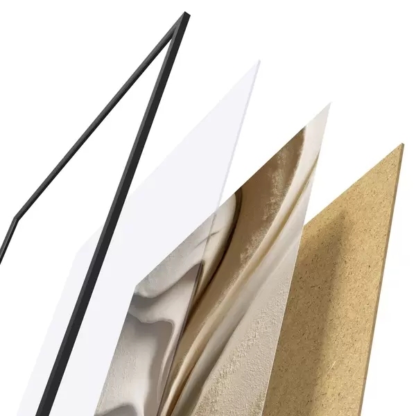 Plakatą sudaro rėmas, pleksiklas, atspausdintas vaizdas ir medžio drožlių plokštės pagrindas. Plakatą galima iš karto pakabinti ant sienos dėl kitoje pusėje esančių laikiklių.