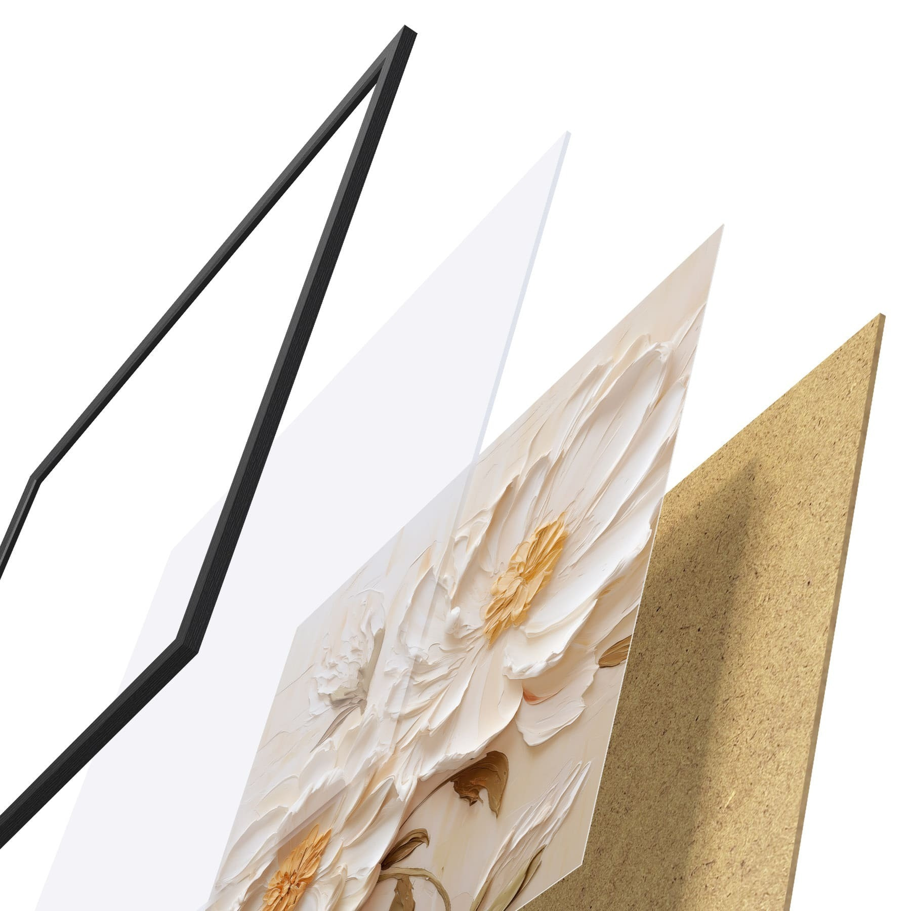 Plakatą sudaro rėmas, pleksiklas, atspausdintas vaizdas ir medžio drožlių plokštės pagrindas. Plakatą galima iš karto pakabinti ant sienos dėl kitoje pusėje esančių laikiklių.