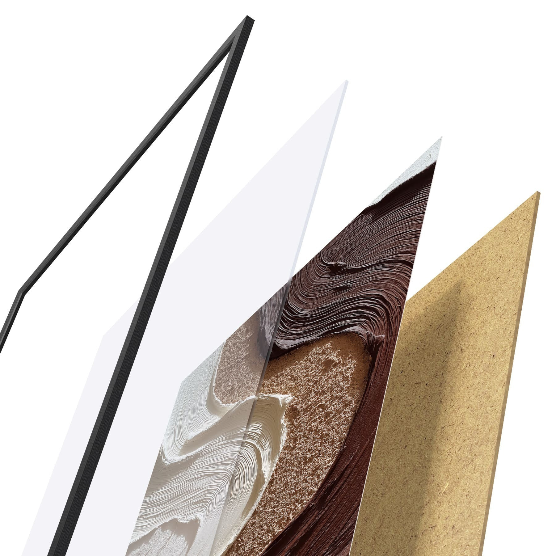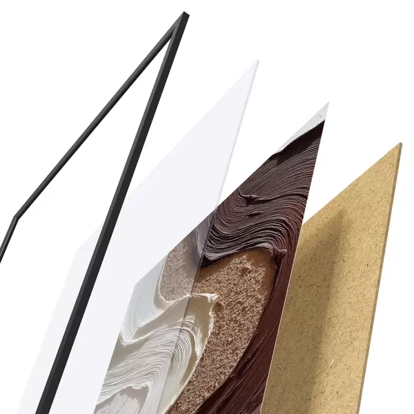 Plakatą sudaro rėmas, pleksiklas, atspausdintas vaizdas ir medžio drožlių plokštės pagrindas. Plakatą galima iš karto pakabinti ant sienos dėl kitoje pusėje esančių laikiklių.