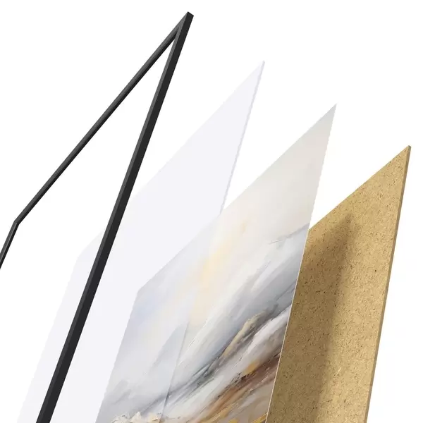 Plakatą sudaro rėmas, pleksiklas, atspausdintas vaizdas ir medžio drožlių plokštės pagrindas. Plakatą galima iš karto pakabinti ant sienos dėl kitoje pusėje esančių laikiklių.
