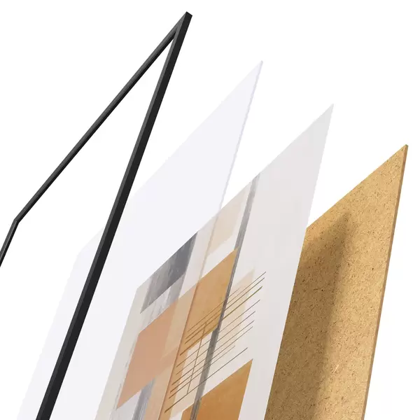 Plakatą sudaro rėmas, pleksiklas, atspausdintas vaizdas ir medžio drožlių plokštės pagrindas. Plakatą galima iš karto pakabinti ant sienos dėl kitoje pusėje esančių laikiklių.