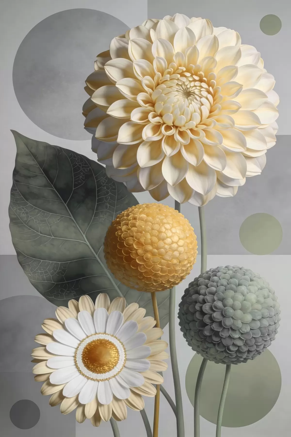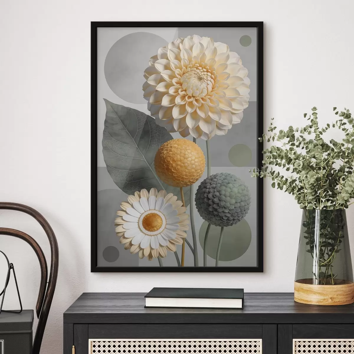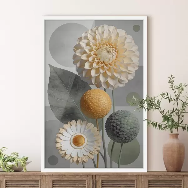 Plakatas Didelės abstrakčios gėlės su geometriniais elementais f48178