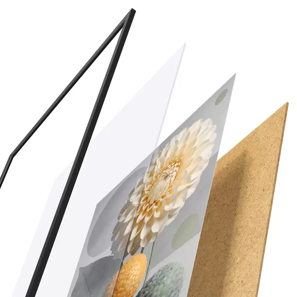 Plakatą sudaro rėmas, pleksiklas, atspausdintas vaizdas ir medžio drožlių plokštės pagrindas. Plakatą galima iš karto pakabinti ant sienos dėl kitoje pusėje esančių laikiklių.