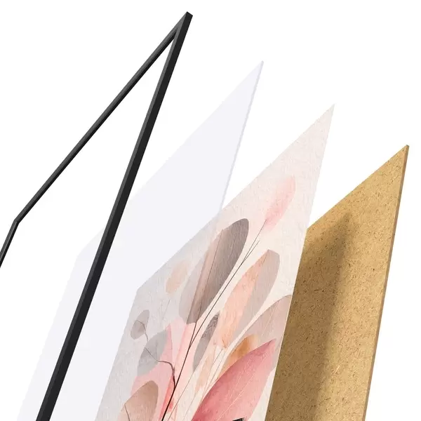 Plakatą sudaro rėmas, pleksiklas, atspausdintas vaizdas ir medžio drožlių plokštės pagrindas. Plakatą galima iš karto pakabinti ant sienos dėl kitoje pusėje esančių laikiklių.