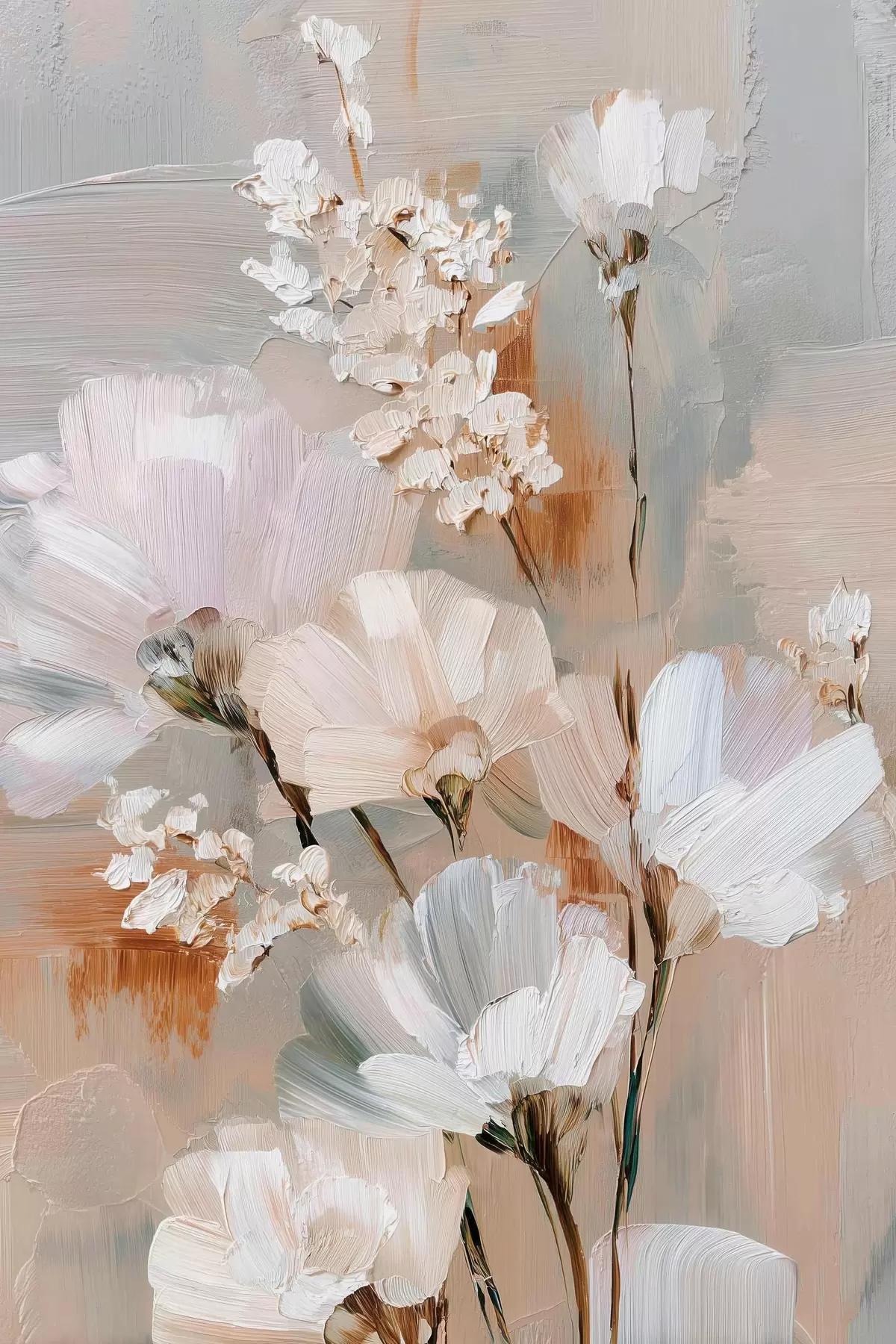 Plakatas Gėlių kompozicija pastelinėmis spalvomis, tapyta aliejaus tapybos stiliumi f48194