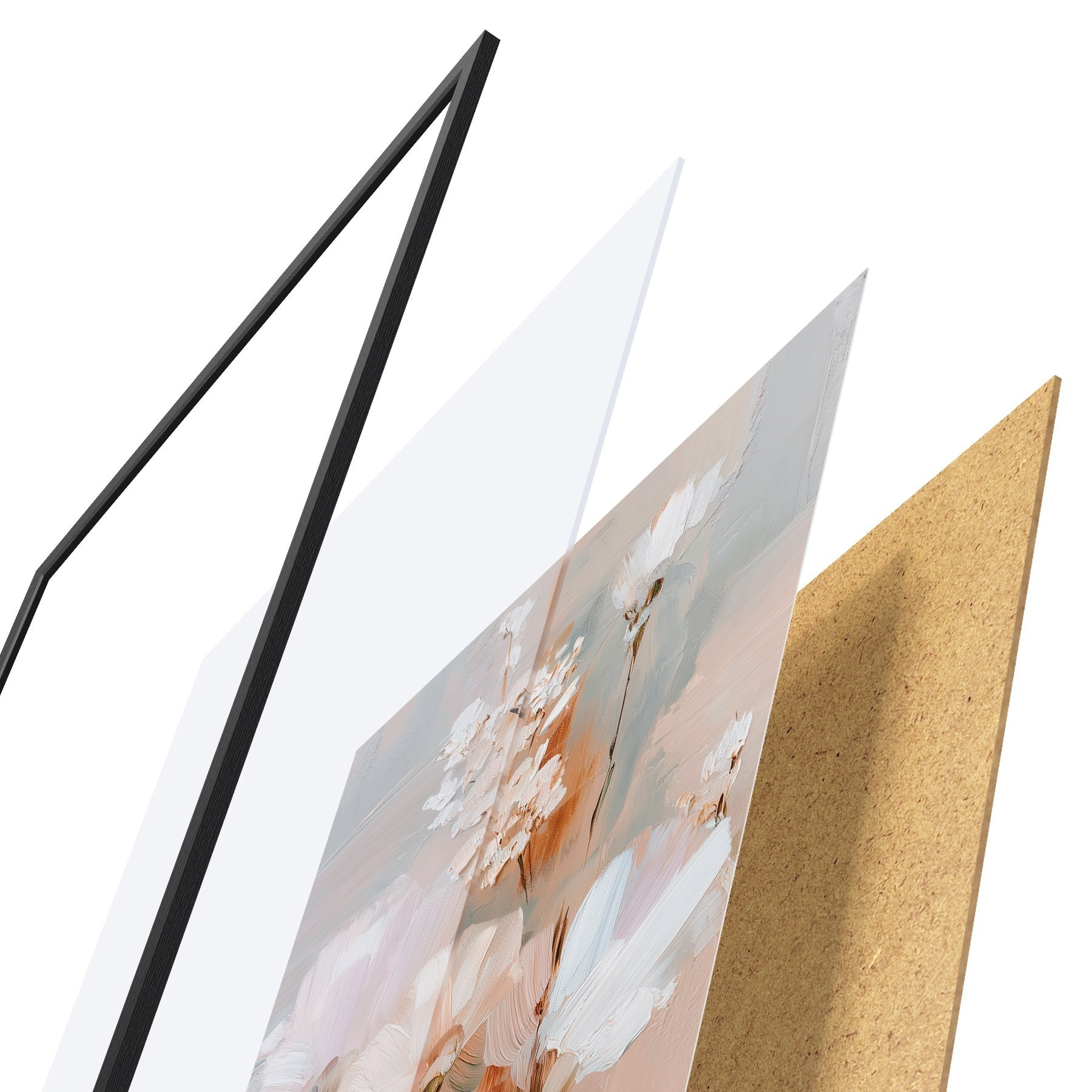 Plakatą sudaro rėmas, pleksiklas, atspausdintas vaizdas ir medžio drožlių plokštės pagrindas. Plakatą galima iš karto pakabinti ant sienos dėl kitoje pusėje esančių laikiklių.