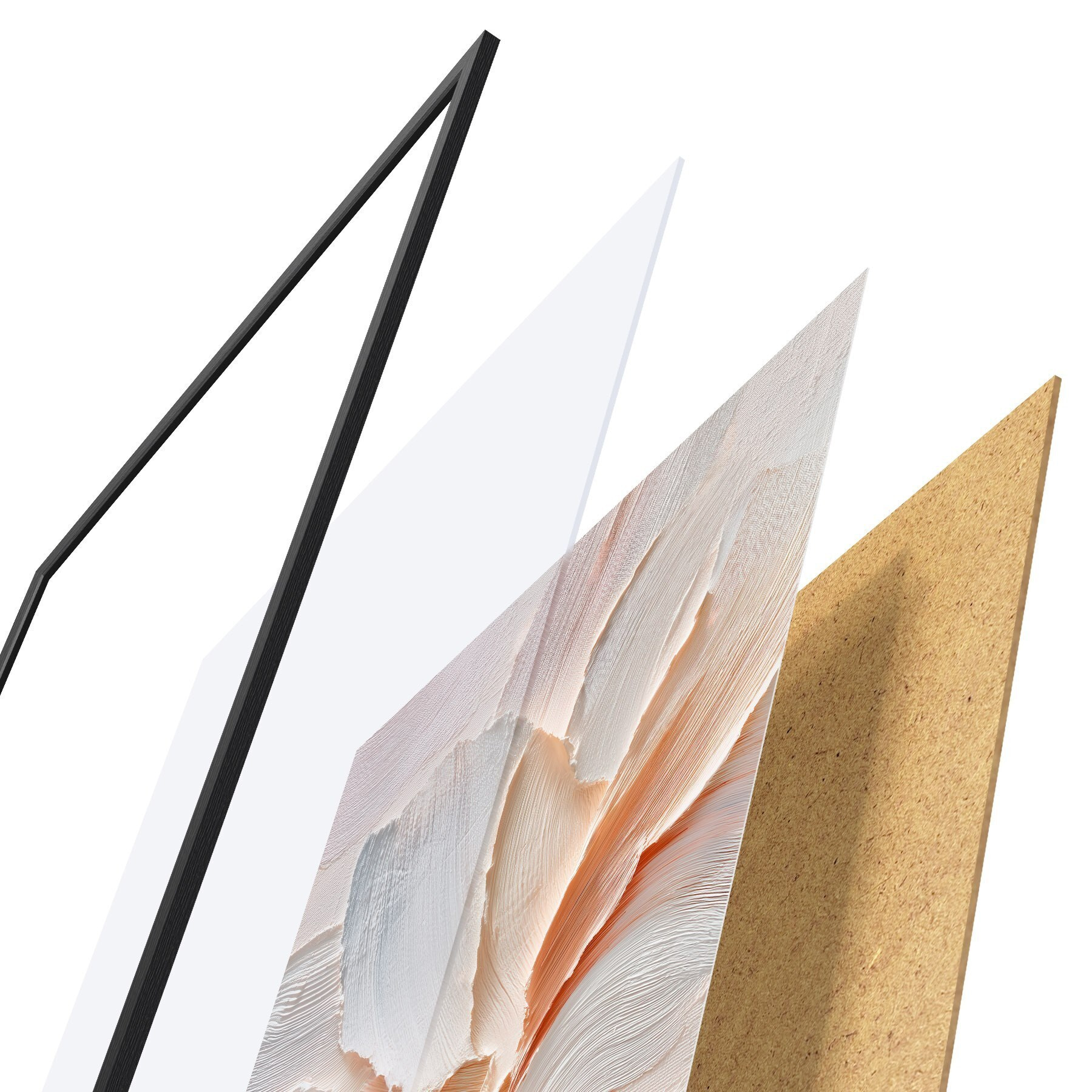 Plakatą sudaro rėmas, pleksiklas, atspausdintas vaizdas ir medžio drožlių plokštės pagrindas. Plakatą galima iš karto pakabinti ant sienos dėl kitoje pusėje esančių laikiklių.