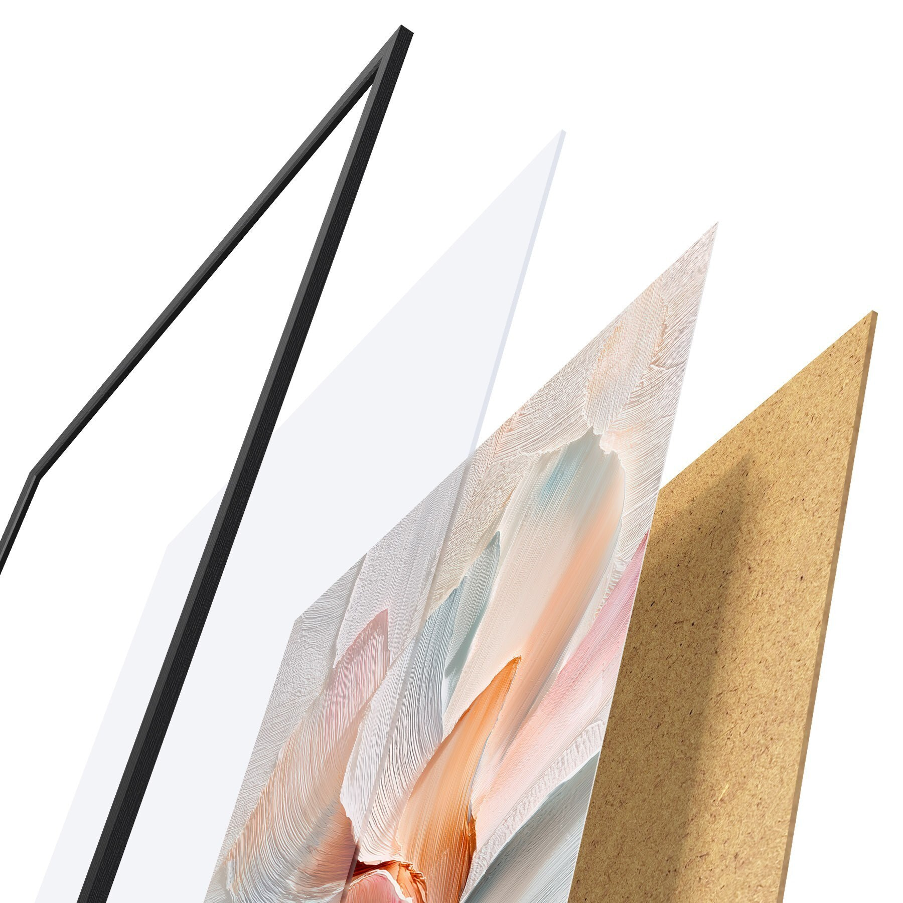 Plakatą sudaro rėmas, pleksiklas, atspausdintas vaizdas ir medžio drožlių plokštės pagrindas. Plakatą galima iš karto pakabinti ant sienos dėl kitoje pusėje esančių laikiklių.