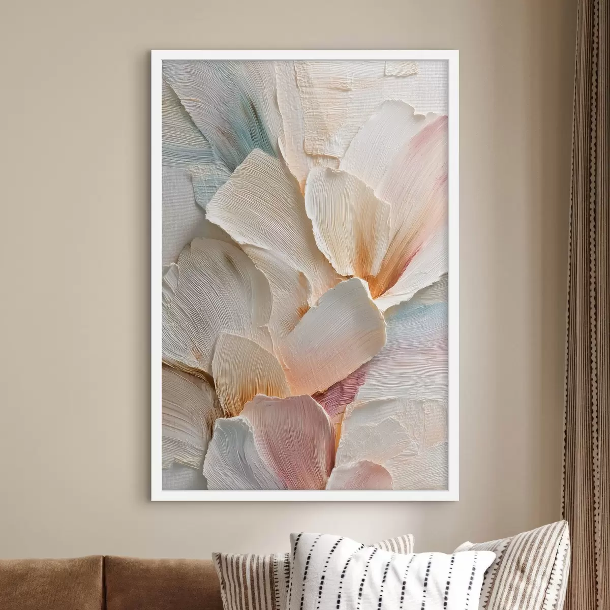 Plakatas Abstrakti gėlių kompozicija šviesiomis spalvomis, nutapyta aliejaus tapybos stiliumi f48204