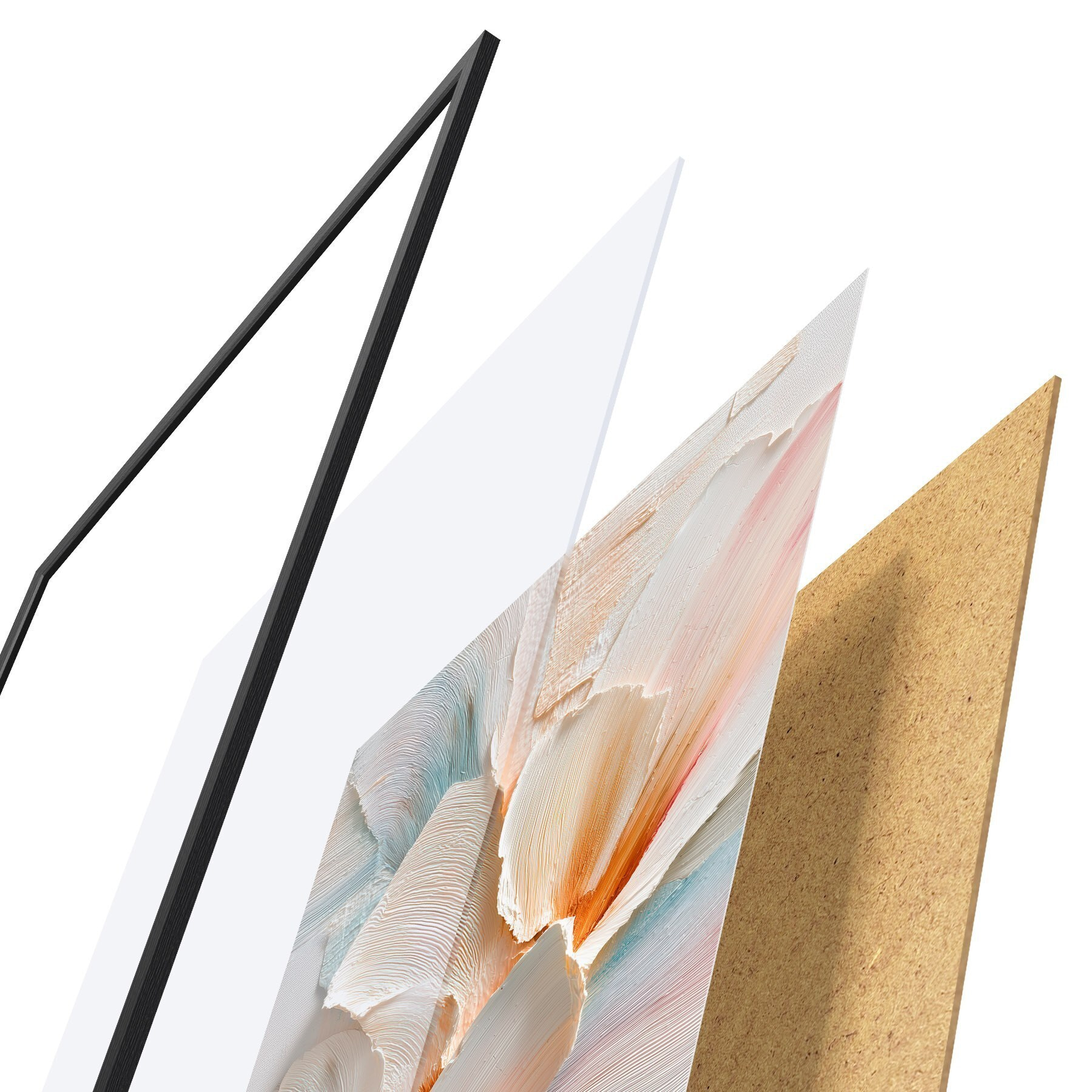 Plakatą sudaro rėmas, pleksiklas, atspausdintas vaizdas ir medžio drožlių plokštės pagrindas. Plakatą galima iš karto pakabinti ant sienos dėl kitoje pusėje esančių laikiklių.