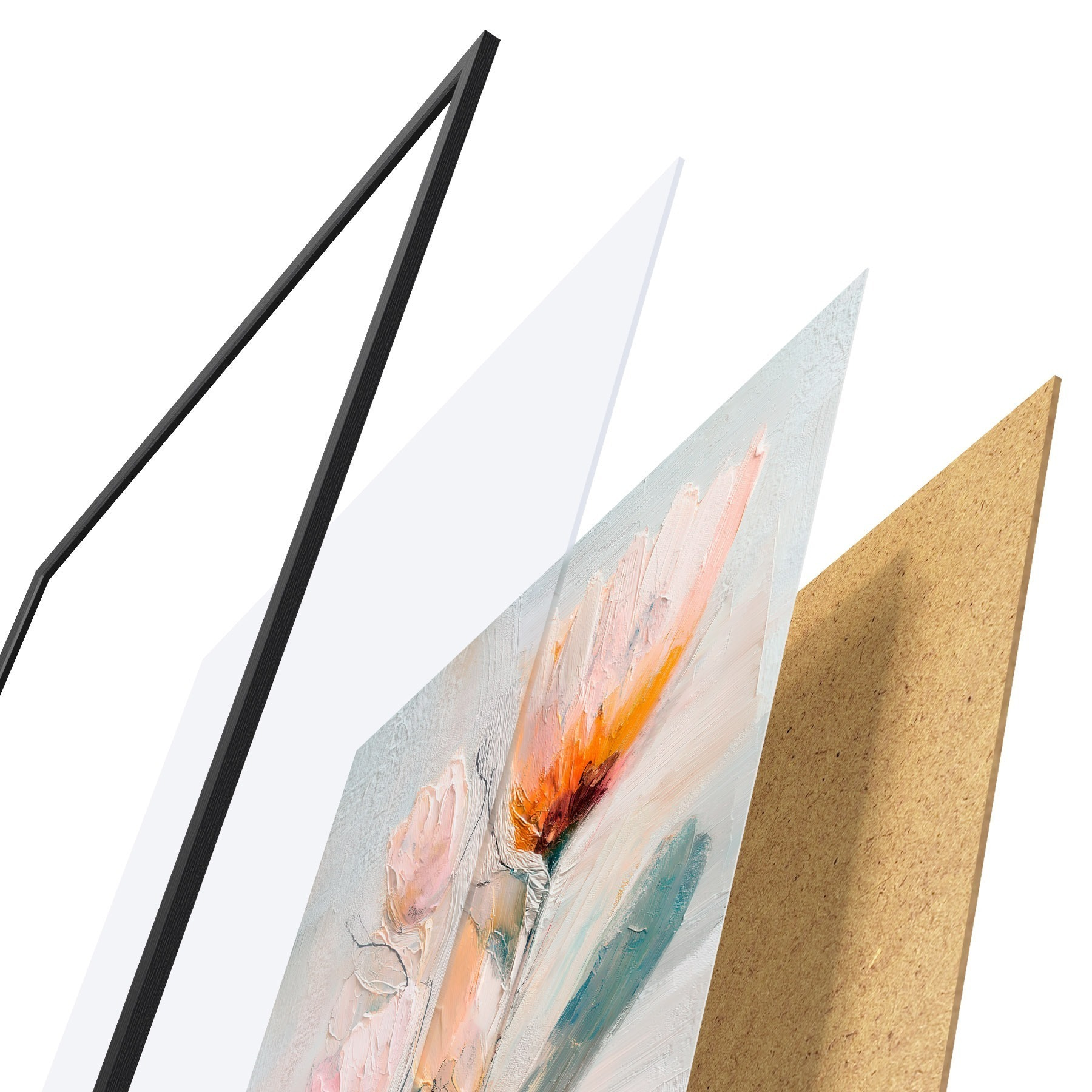 Plakatą sudaro rėmas, pleksiklas, atspausdintas vaizdas ir medžio drožlių plokštės pagrindas. Plakatą galima iš karto pakabinti ant sienos dėl kitoje pusėje esančių laikiklių.