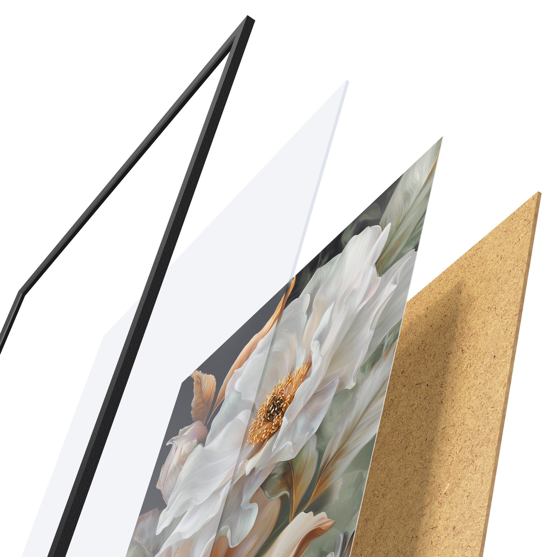 Plakatą sudaro rėmas, pleksiklas, atspausdintas vaizdas ir medžio drožlių plokštės pagrindas. Plakatą galima iš karto pakabinti ant sienos dėl kitoje pusėje esančių laikiklių.
