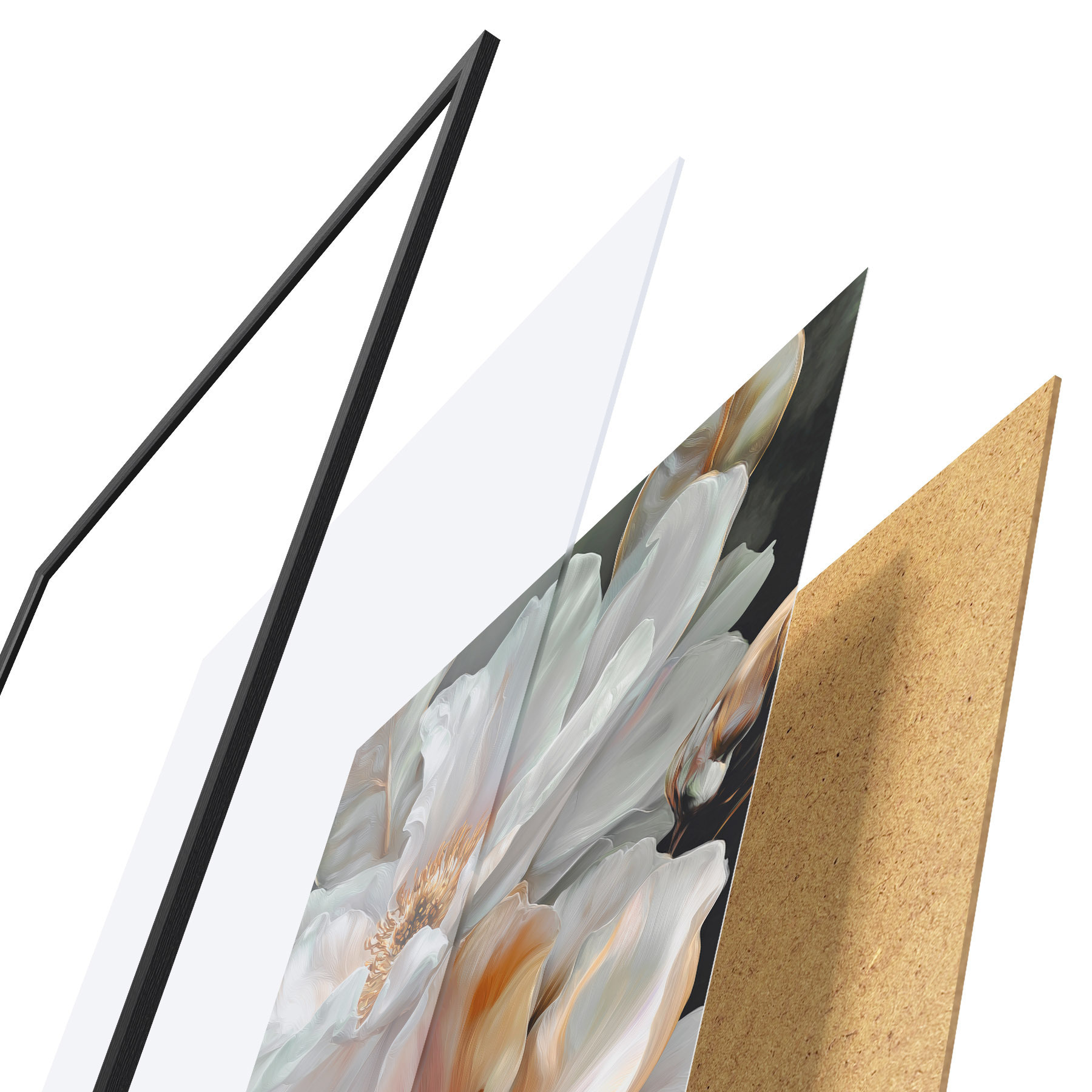 Plakatą sudaro rėmas, pleksiklas, atspausdintas vaizdas ir medžio drožlių plokštės pagrindas. Plakatą galima iš karto pakabinti ant sienos dėl kitoje pusėje esančių laikiklių.