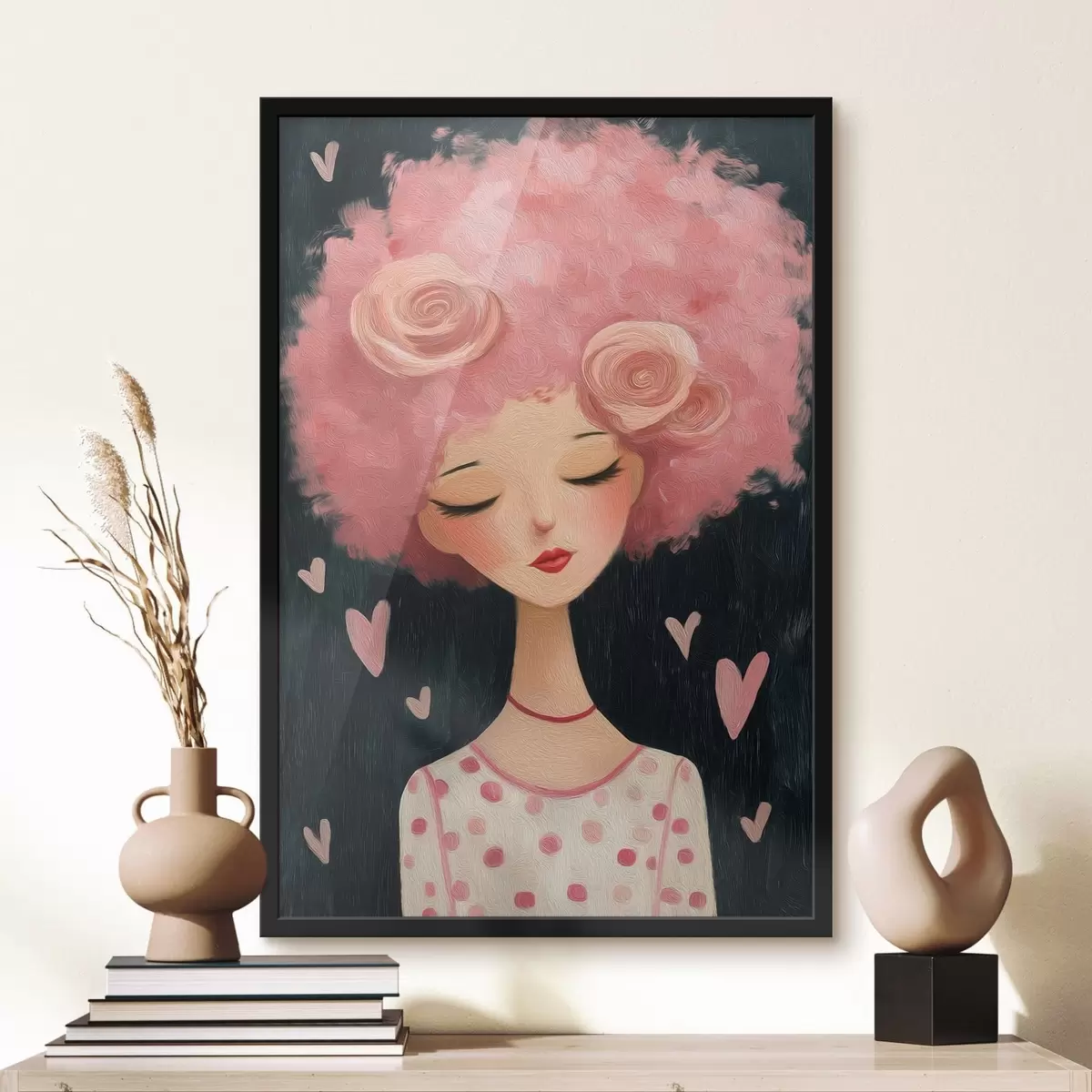 Plakatas Mergina su rožiniais plaukais f48227