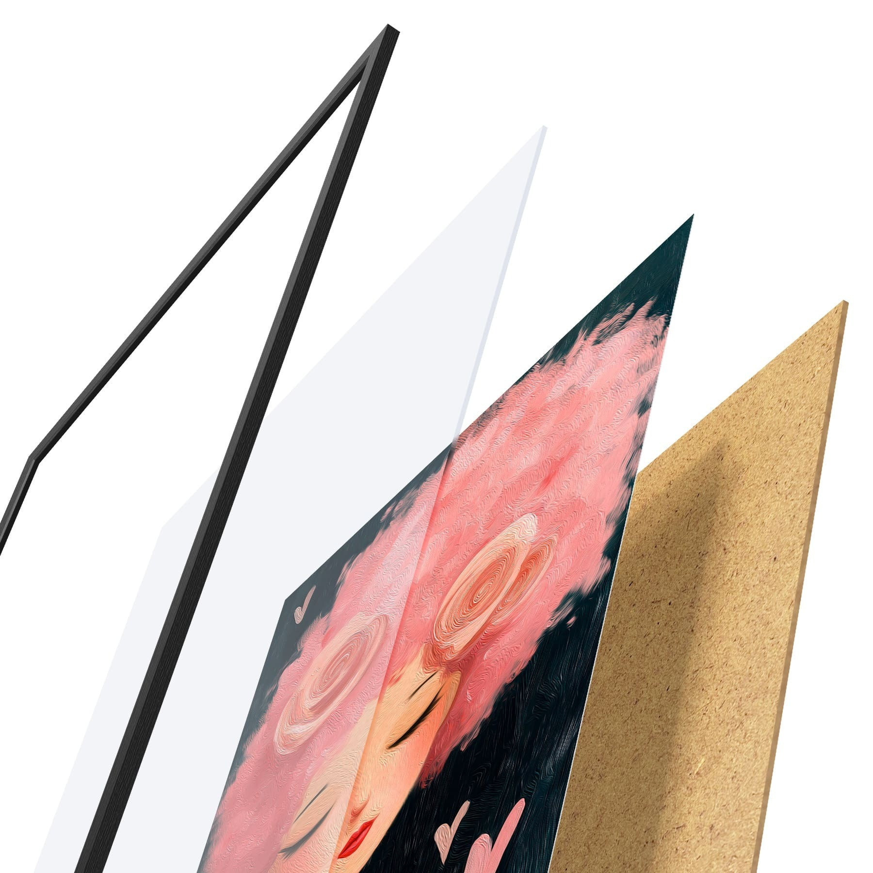 Plakatą sudaro rėmas, pleksiklas, atspausdintas vaizdas ir medžio drožlių plokštės pagrindas. Plakatą galima iš karto pakabinti ant sienos dėl kitoje pusėje esančių laikiklių.