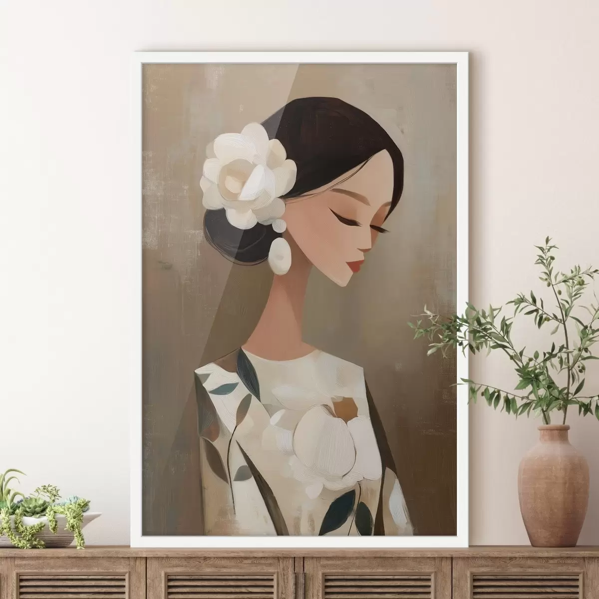 Plakatas Mergina su gėlėmis plaukuose f48232