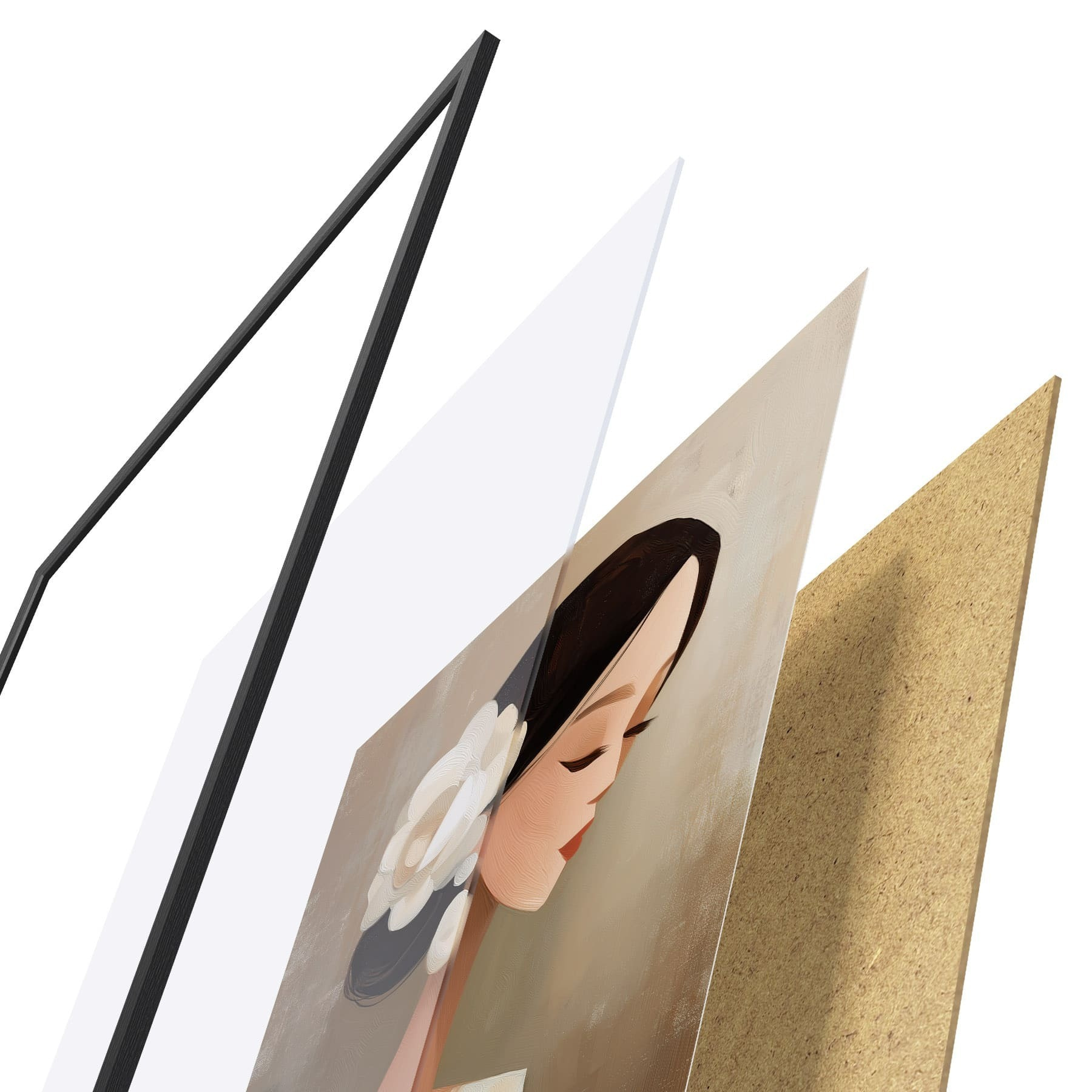 Plakatą sudaro rėmas, pleksiklas, atspausdintas vaizdas ir medžio drožlių plokštės pagrindas. Plakatą galima iš karto pakabinti ant sienos dėl kitoje pusėje esančių laikiklių.