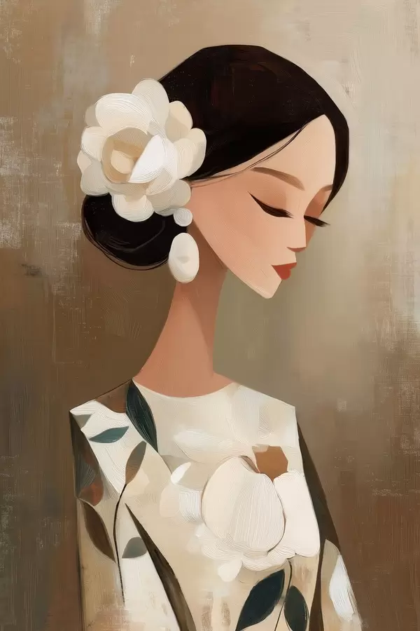 Plakatas Mergina su gėlėmis plaukuose f48232