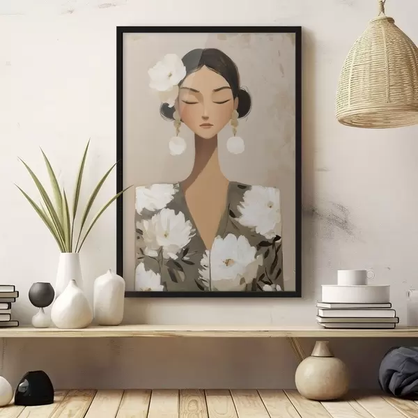 Plakatas Mergina su gėlėmis plaukuose f48233